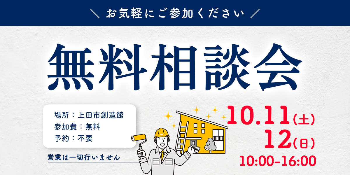 【10/11・12開催】上田市の塗装無料相談会|何でもご相談ください!