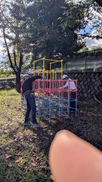 かといって人数増やしても塗りにくいので、ジャングルジムは見た目通りちょっと大変です。